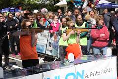 Jeder, den das Biathlon-Fieber packt, kann mitmachen und das besondere Feeling hautnah erleben. Zu absolvieren sind 400 Meter laufen auf einem Cardio-Gerät, dem sogenannten Thorax-Trainer. Anschließend werden mit dem Infrarot-Gewehr fünf Schüsse im Stehendschießen abgegeben.